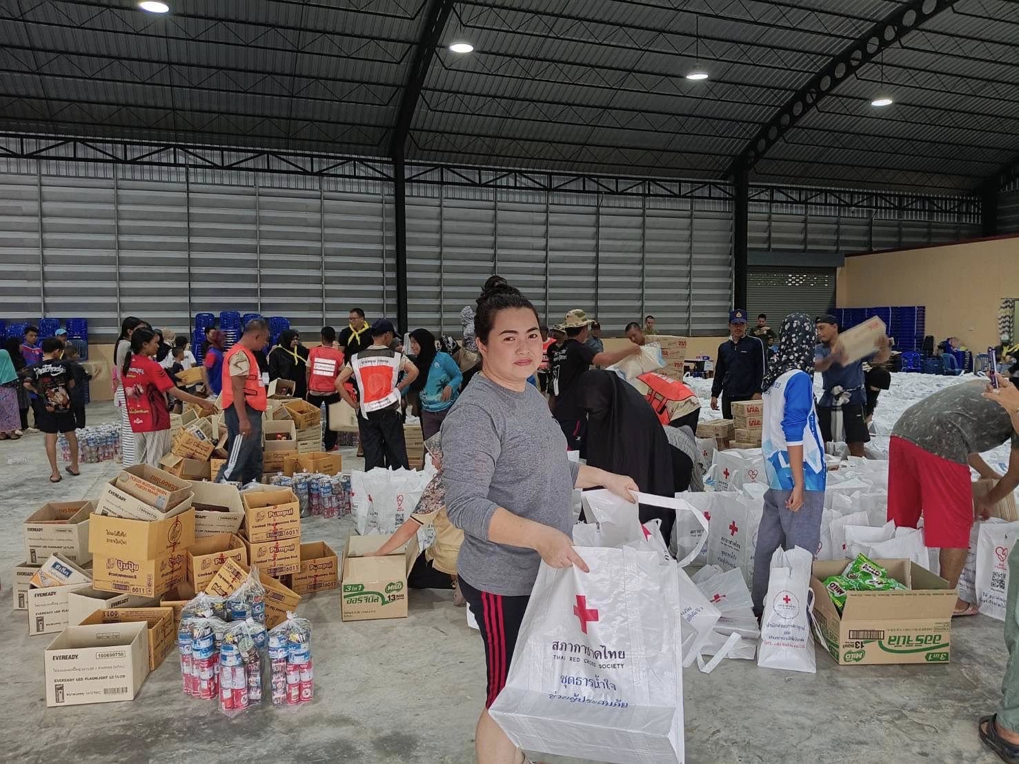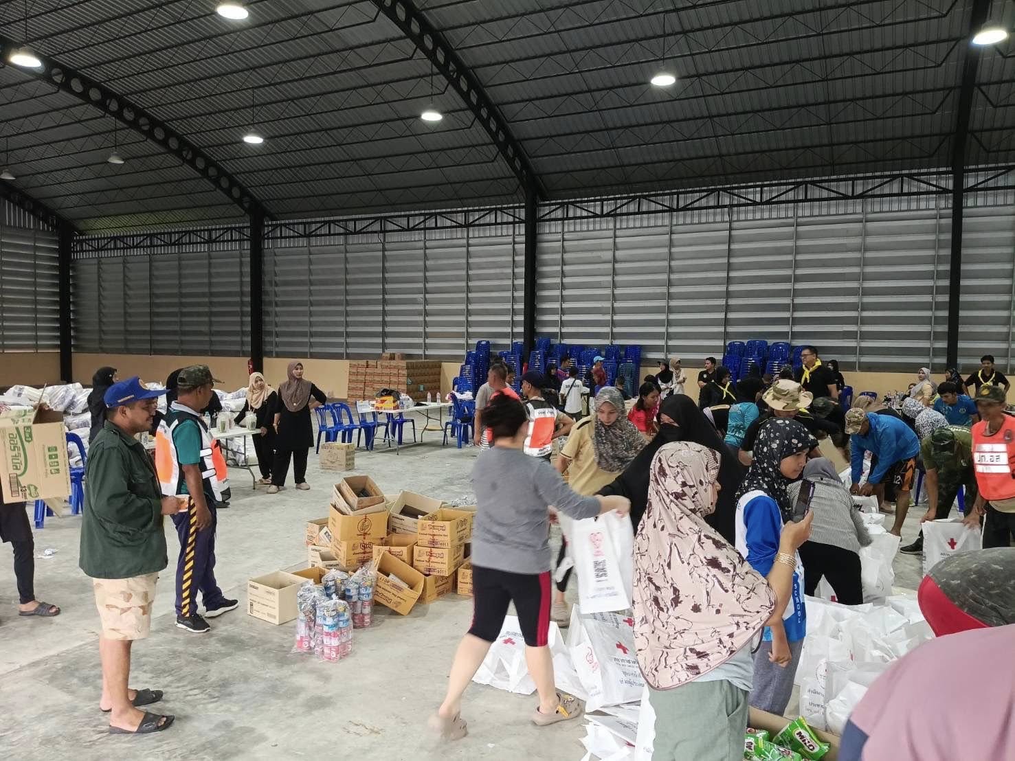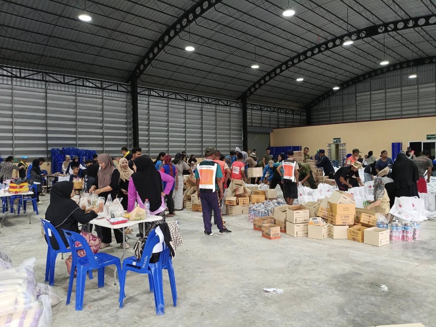 ข้าราชการตำรวจ สภ.ควนโดน ชุดจิตอาสา ชุดที่ 1ออกช่วยจัดสิ่งของจากสภากาชาดไทยเพื่อที่จะนำไปบริจาคให้กับประชาชนที่ได้รับผลกระทบจากน้ำท่วม