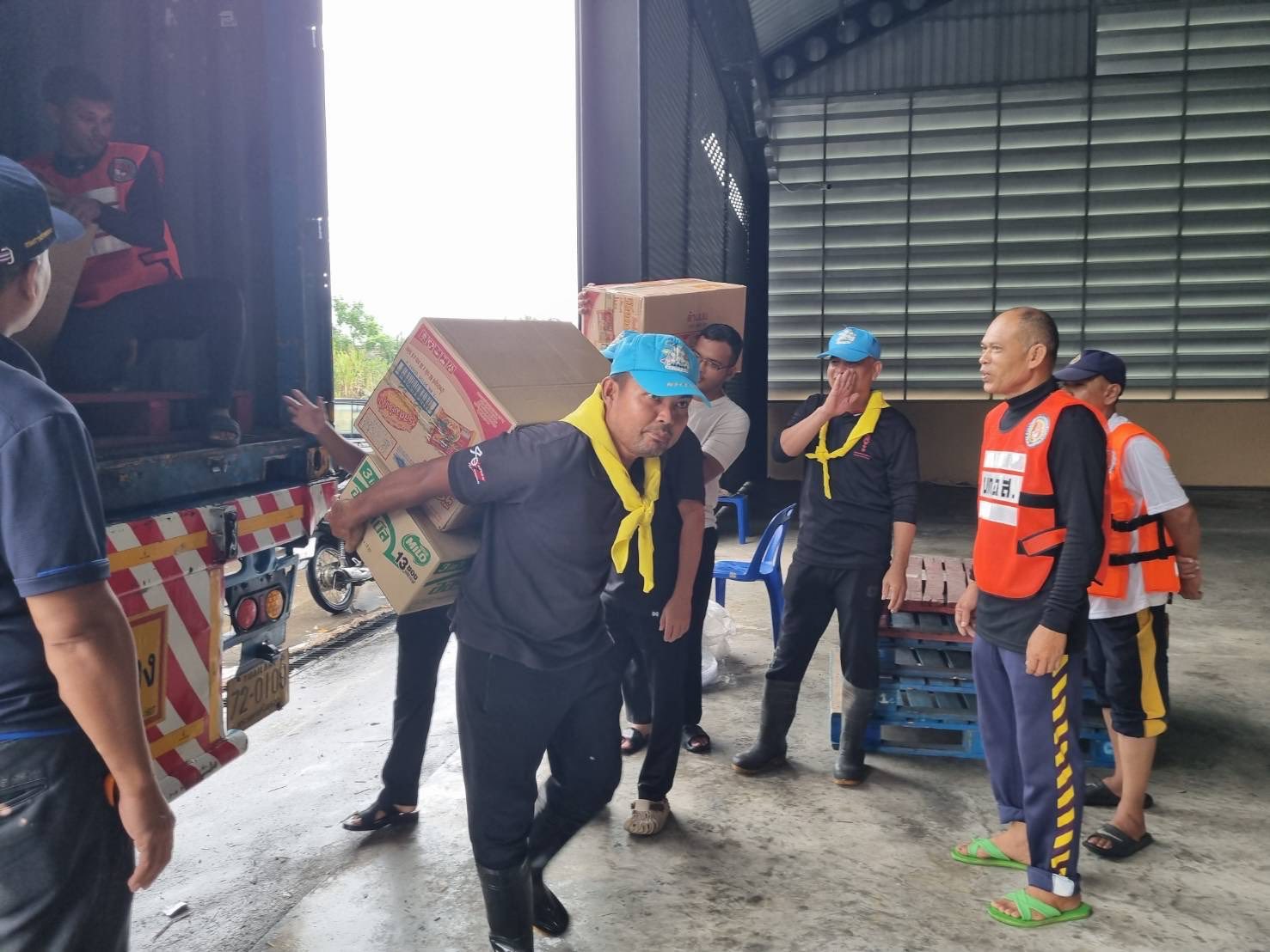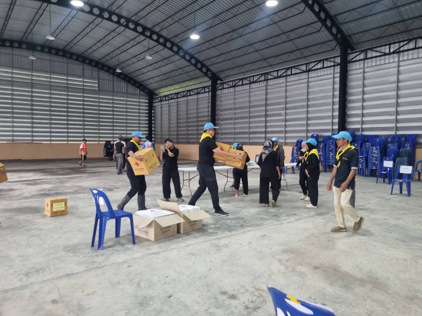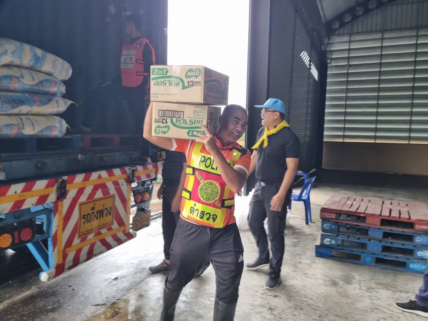 ข้าราชการตำรวจ สภ.ควนโดน ชุดจิตอาสา ชุดที่ 1ออกช่วยจัดสิ่งของจากสภากาชาดไทยเพื่อที่จะนำไปบริจาคให้กับประชาชนที่ได้รับผลกระทบจากน้ำท่วม