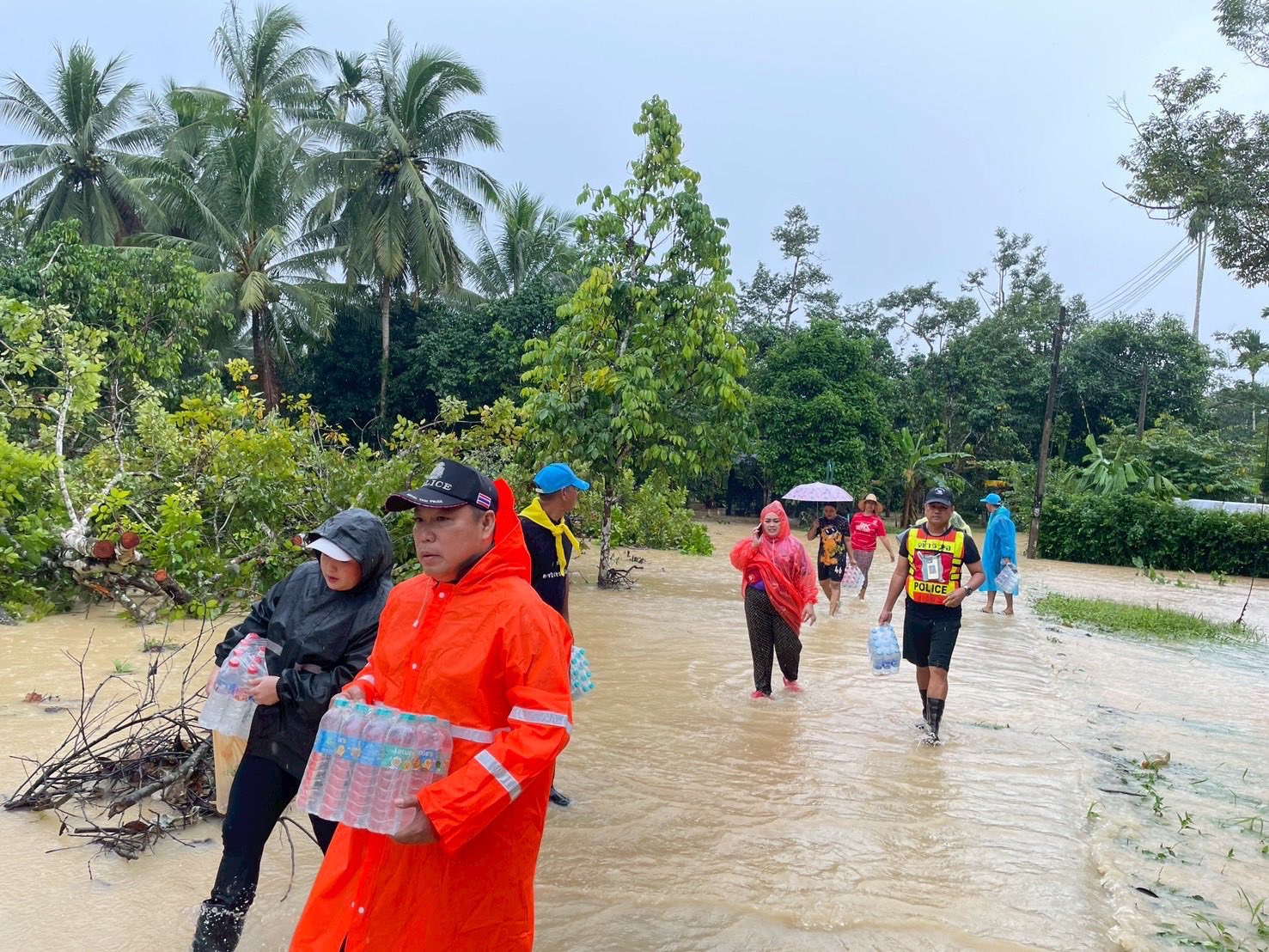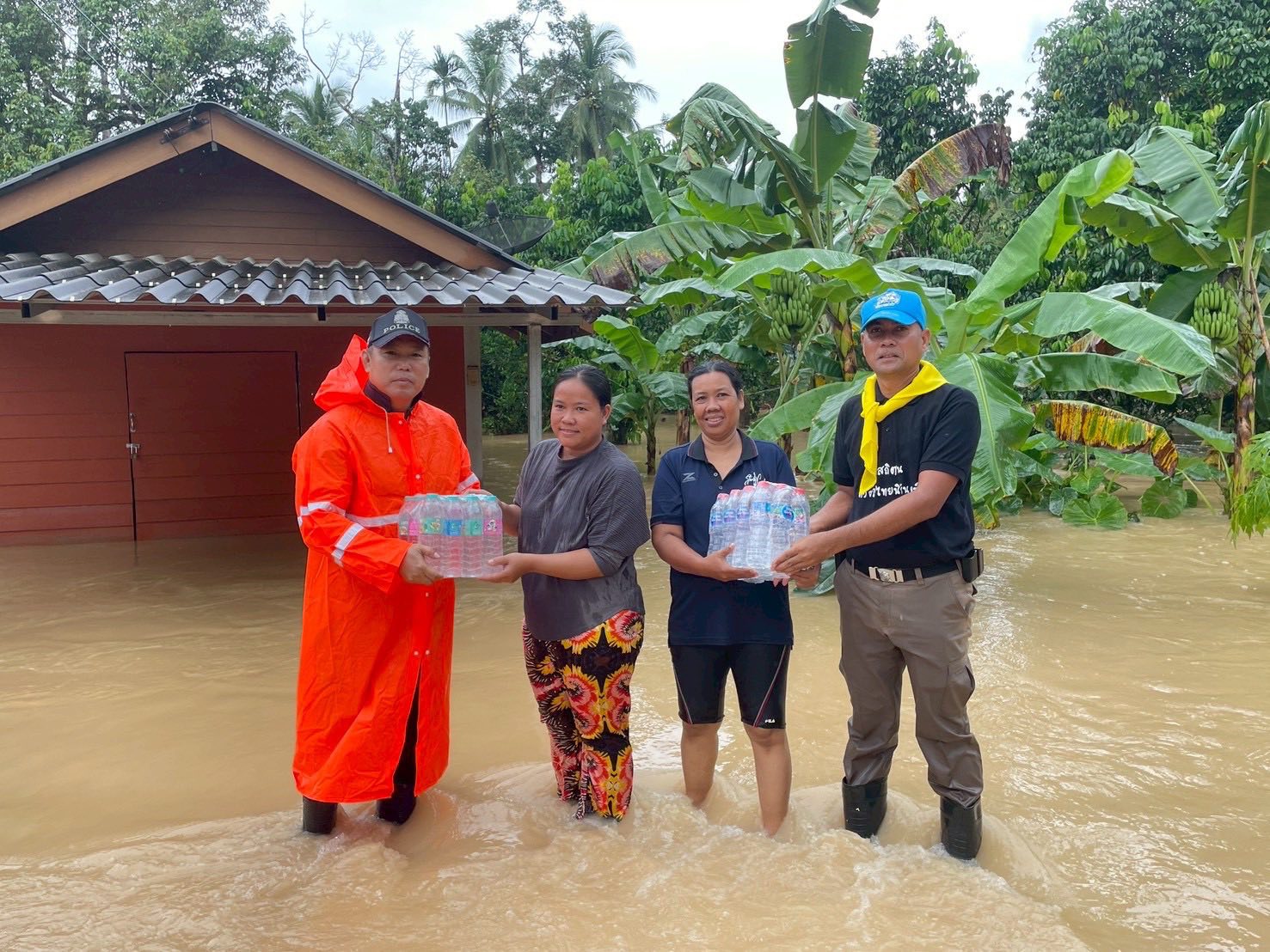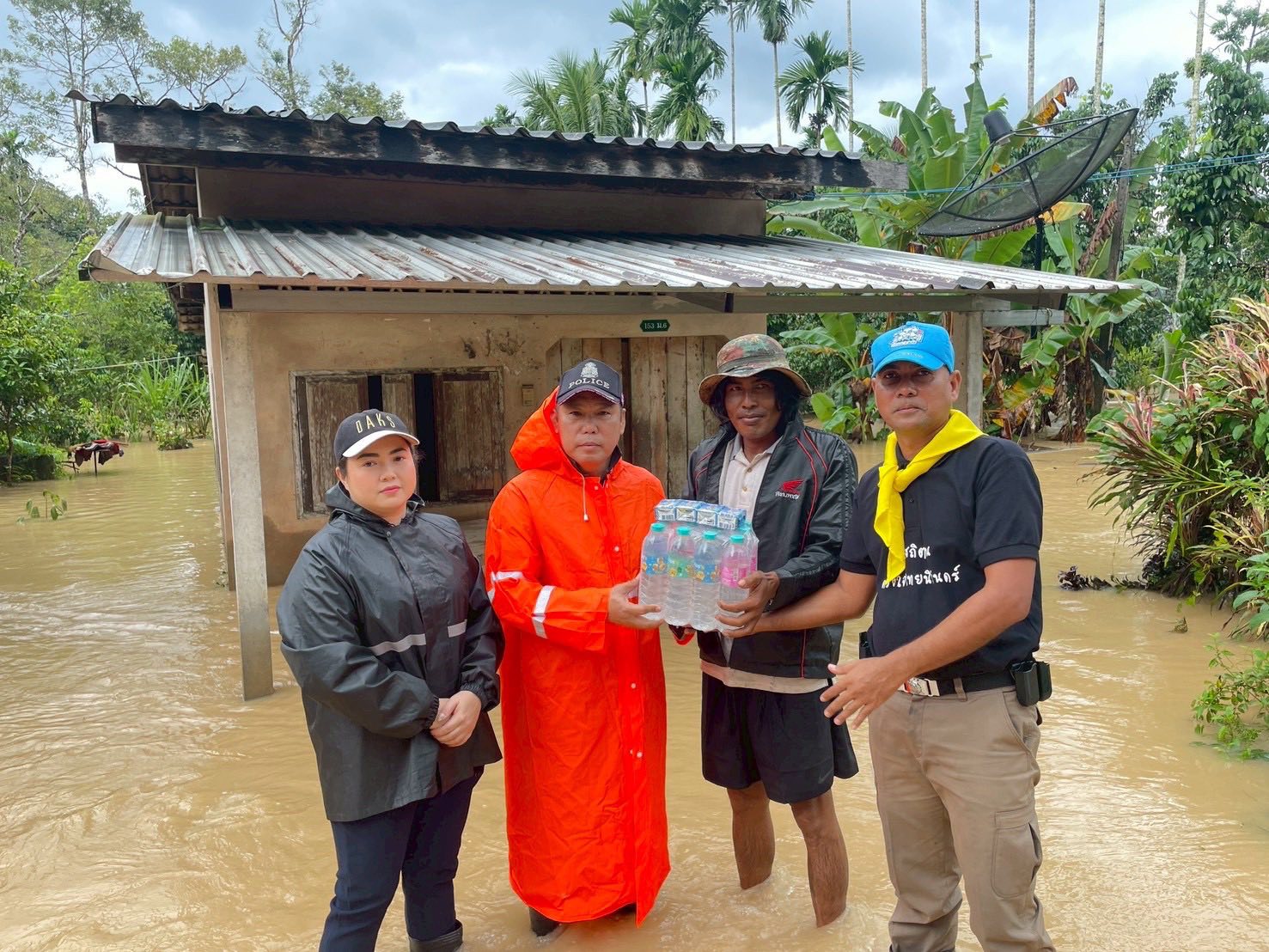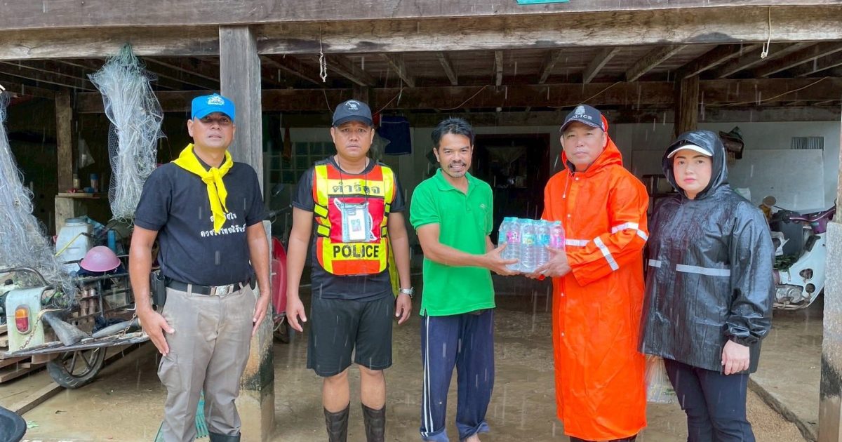ข้าราชการตำรวจ สภ.ควนโดน นำดื่มไปแจกจ่ายกับประชาชนที่ประสบภัยน้ำท่วม