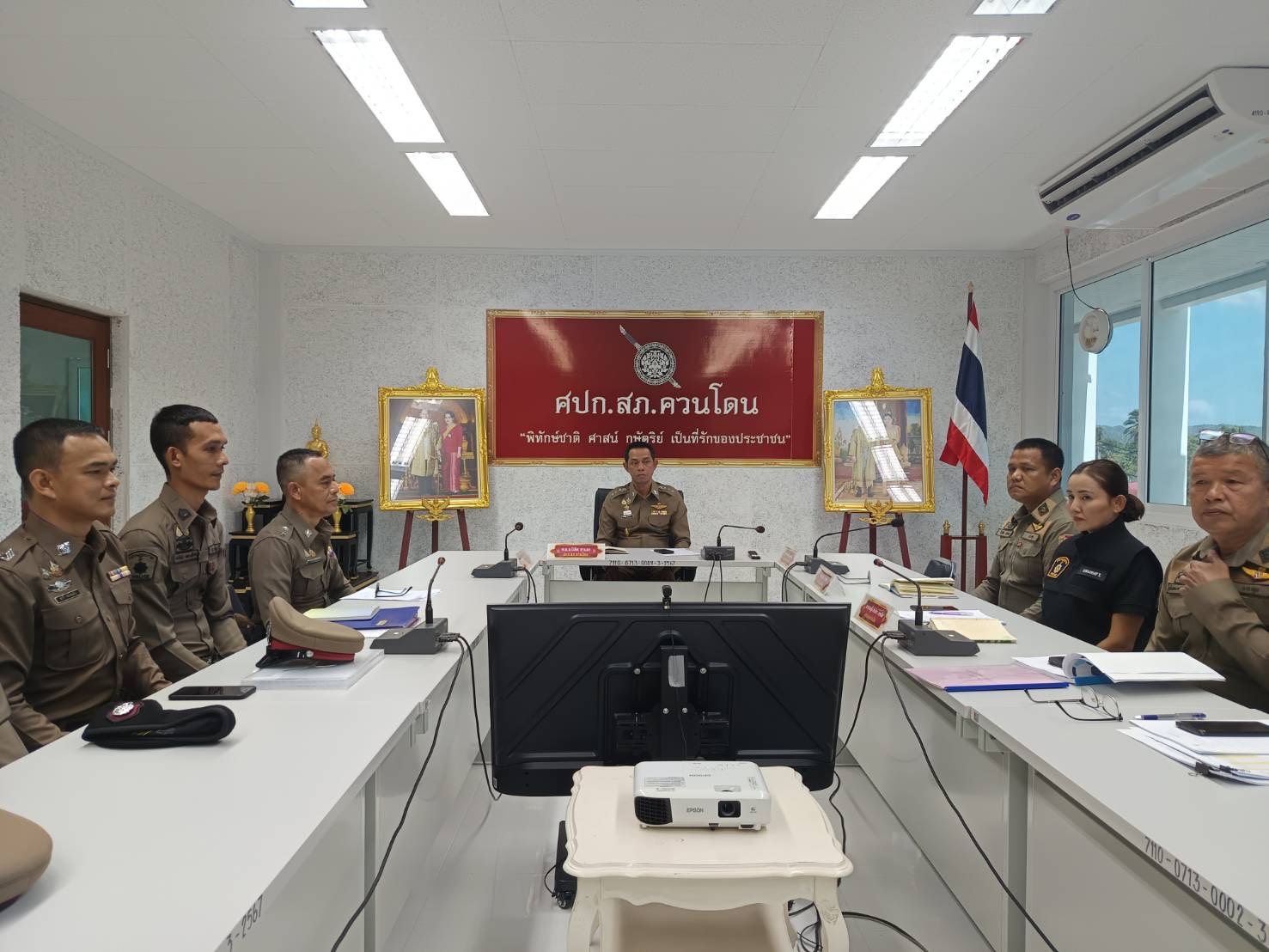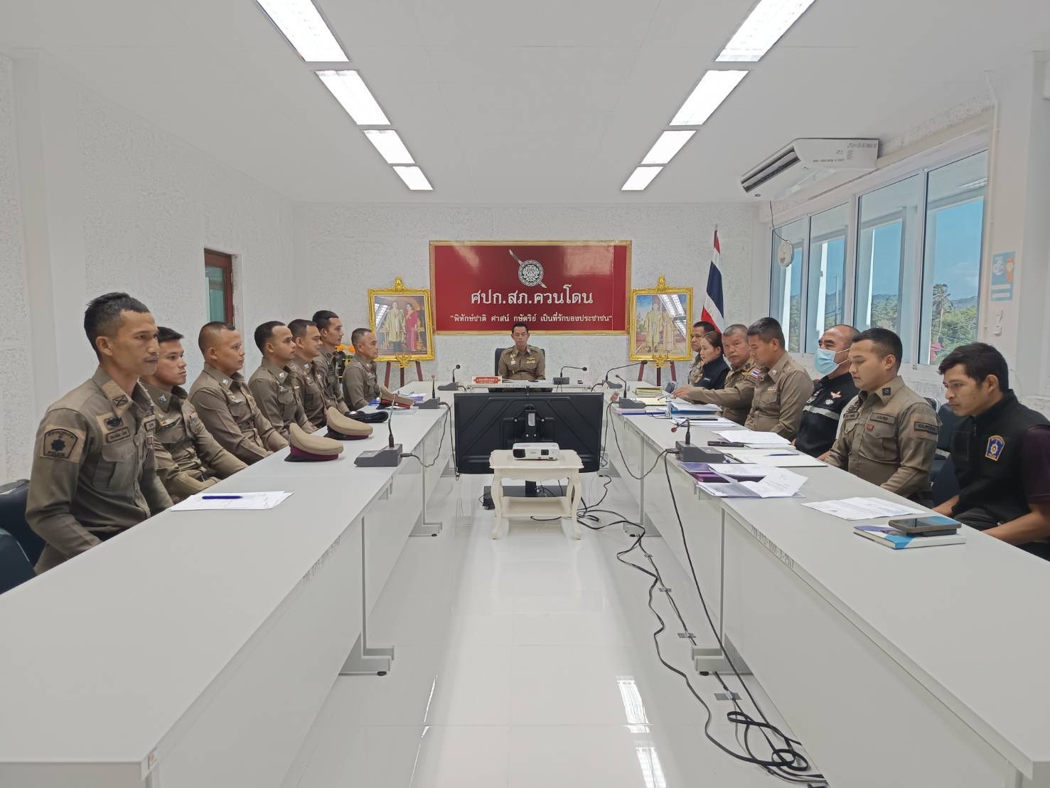 ข้าราชการตำรวจ สภ.ควนโดนระดับ รอง ผกก. ทุกสายงาน,สว.ทุกสายงาน และเจ้าหน้าที่งานอำนวยการทุกนาย เพื่อเข้าร่วมประชุม ศปก.สภ.ควนโดน ประจำสัปดาห์