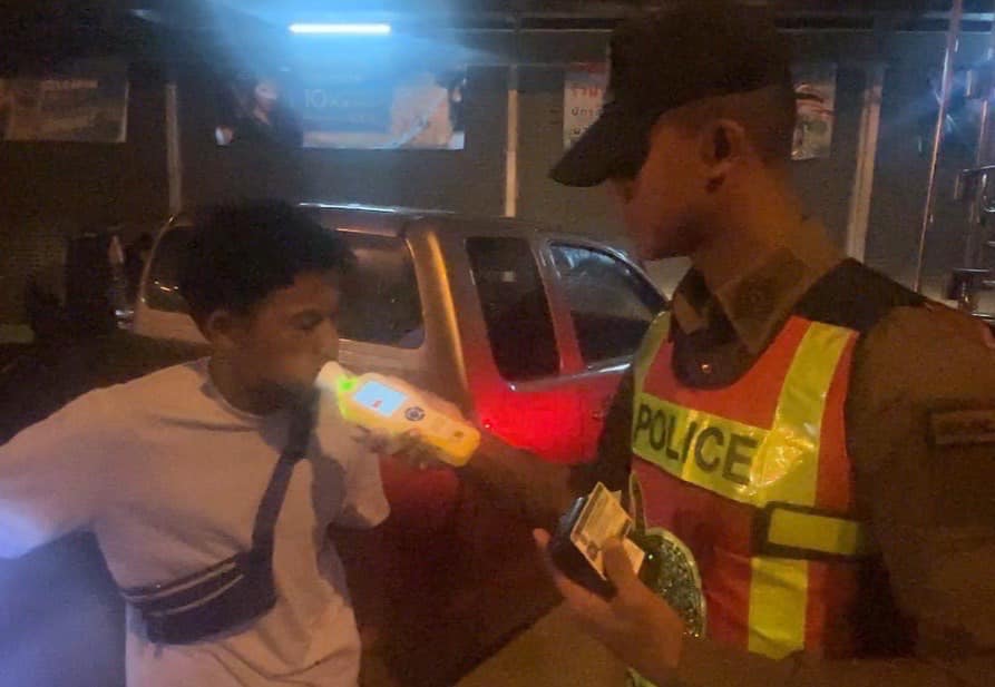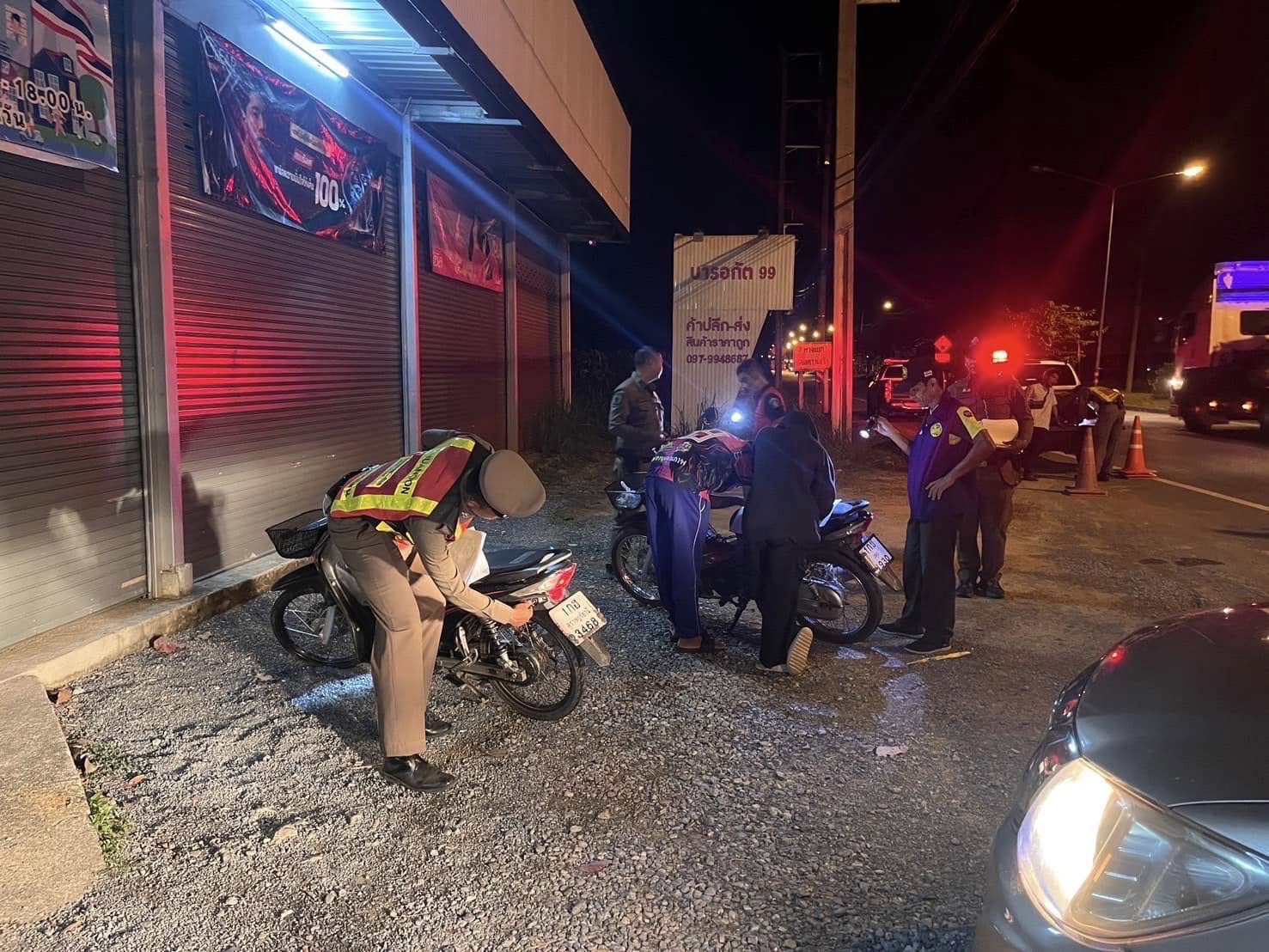 จุดตรวจป้องกันอาชญากรรมและตรวจวัดแอลกอฮอล์ในช่วงเทศกาลปีใหม่2568 ถนนหลัก หน้าตลาดดุสน