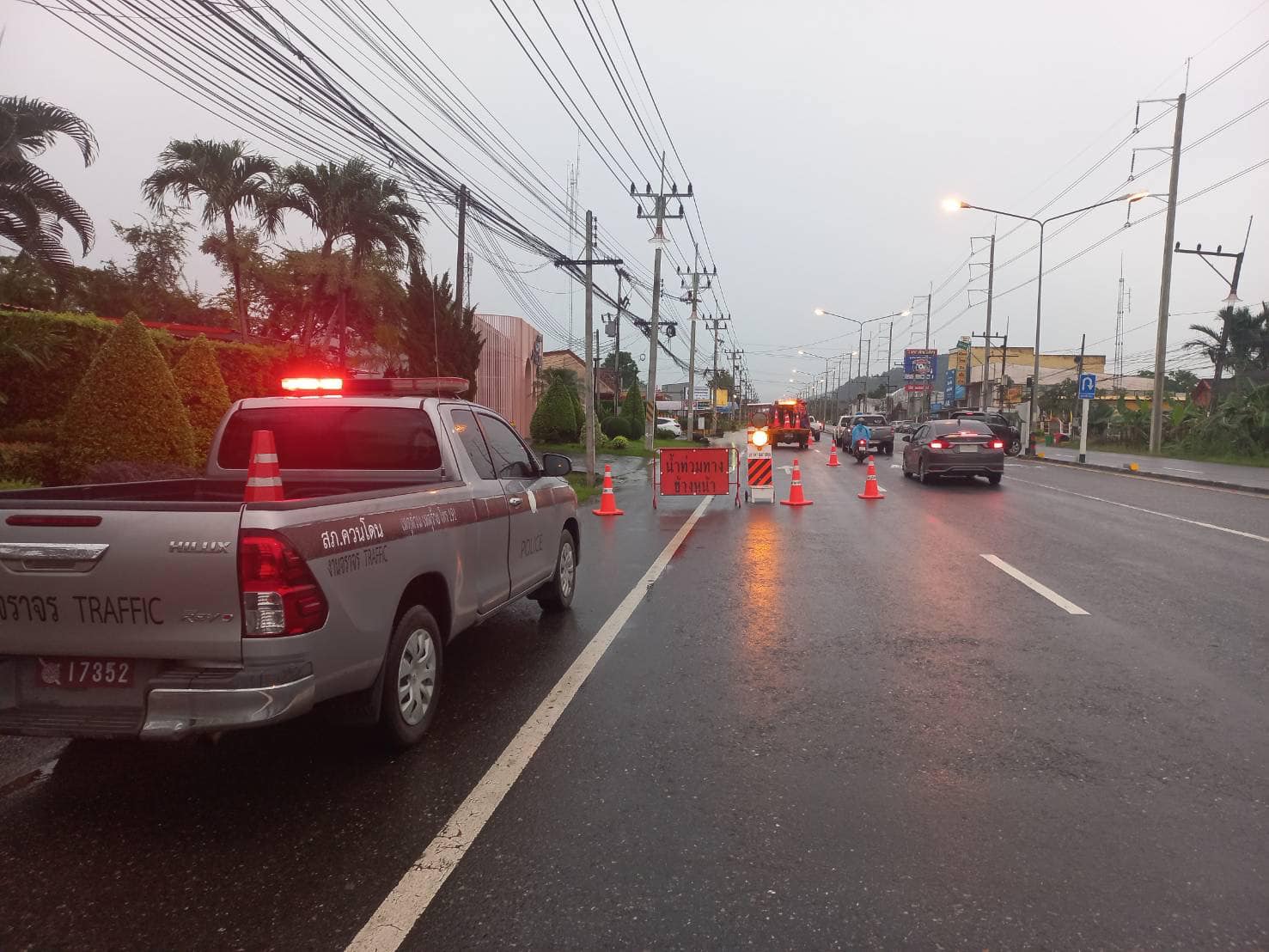 จ.ส.ต.ชานนท์ บุญแก้วขวัญ ผบ.หมู่(ป.)สภ.ควนโดน เวรจราจร นำ 03 ข่าย จร. ออก ว.4 เปิดไฟวับวาบ ในพื้นที่รับผิดชอบ ปิดการจราจร 1 ช่องการจราจร เนื่องจากมีน้ำท่วมผิวทางการจราจร 1 ช่อง จึงเรียนมาเพื่อโปรดทราบ