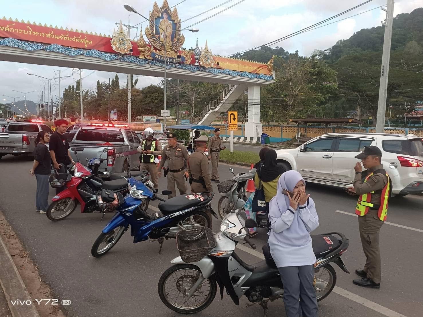 สภ.ควนโดน 301830 ธ.ค.67 พ.ต.อ.สนธยา ธูปทอง ผกก.สภ.ควนโดน สั่งการให้ พ.ต.ท.นนทพัทธ์ สมบูรณ์จันทร์ รอง ผกก.ป.ฯ พ.ต.ท.วีรทัย ศรีหมั่น ผู้มีหน้าที่ตั้งจุดตรวจชป.20 เวรจราจจร นสต.ฝึกหัดปฏิบัติราชการ กำลังรวม 14 นาย ร่วมกันตั้งว.43 จุดตรวจป้องกันอาชญากรรมและตรวจวัดแอลกอฮอล์ในช่วงเทศกาลปีใหม่2568 หน้ารร.อนุบาลควนโดน ถ.406 ผลการปฏิบัติดังนี้ 1.สุ่มตรวจวัดแอลกอฮอล์จำนวน 2 ราย ไม่พบปริมาณเกินกว่าที่กมกำหนด 2.ตรวจยึดรถจยย. - คัน 3.จัดทำประวัติรถจยย.กลุ่มเสี่ยงแข่งรถในทาง 3 คัน 4.จัดทำประวัติบุคคลกลุ่มเสี่ยงแข่งรถในทาง จำนวน 4 ราย 5.หลังจากได้ออกใบสั่งจพง.จราจรและว่ากล่าวตักเตือนผ่านระบบptm.ให้กับผู้กระทำผิดข้อหาไม่สวมหมวกนิรภัยแล้ว สภ.ควนโดน ได้ดำเนินการแจกหมวกนิรภัยซึ่งตร.สนับสนุนงบประมาณ ให้กับผู้ขับขี่ที่ไม่สวมหมวกนิรภัยและได้จัดอบรมรณรงค์ขับขี่ปลอดภัยสวมใส่หมวกกันน๊อคทุกครั้ง โดยจพง.จราจรสภ.ควนโดน เพื่อสร้างวินัยจราจรให้แก่ผู้ขับขี่ที่กระทำผิดไม่สวมหมวกนิรภัยในครั้งนี้ด้วย เสร็จสิ้นเวลา 19.15 น. เหตุการณ์ทั่วไปปกติ