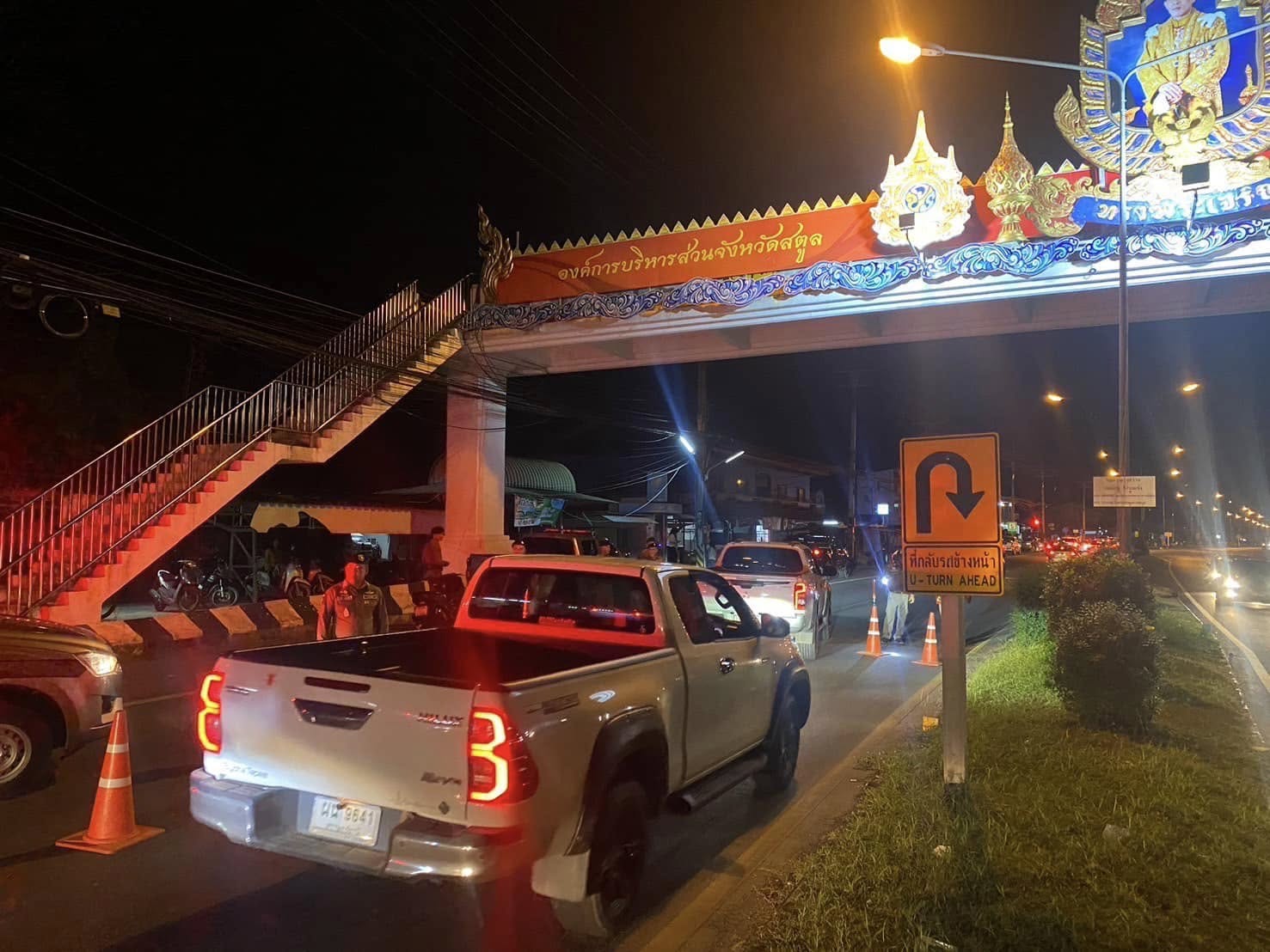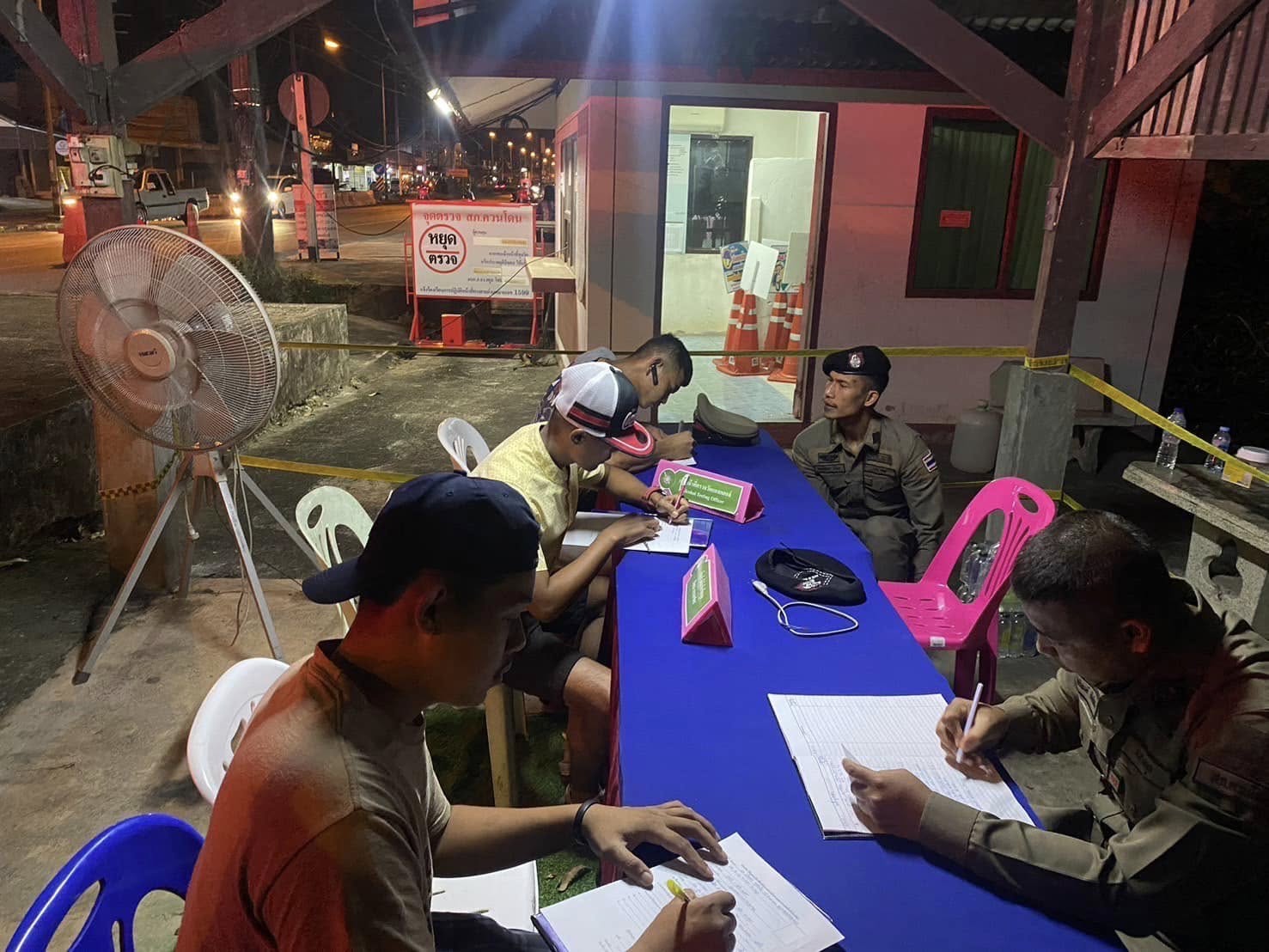 สภ.ควนโดน 292145 ธ.ค.67 พ.ต.อ.สนธยา ธูปทอง ผกก.สภ.ควนโดน สั่งการให้ พ.ต.ท.นนทพัทธ์ สมบูรณ์จันทร์ รอง ผกก.ป.ฯ พ.ต.ท.วีรทัย ศรีหมั่น ผู้มีหน้าที่ตั้งจุดตรวจชป.20 เวรจราจจร นสต.ฝึกหัดปฏิบัติราชการ กำลังรวม 14 นาย ร่วมกันตั้งว.43 จุดตรวจป้องกันอาชญากรรมและตรวจวัดแอลกอฮอล์ในช่วงเทศกาลปีใหม่2568 หน้ารร.อนุบาลควนโดน ถ.406 ผลการปฏิบัติดังนี้ 1.สุ่มตรวจวัดแอลกอฮอล์จำนวน 5 ราย ไม่พบปริมาณเกินกว่าที่กมกำหนด 2.ตรวจยึดรถจยย. - คัน 3.จัดทำประวัติรถจยย.กลุ่มเสี่ยงแข่งรถในทาง 4 คัน 4.จัดทำประวัติบุคคลกลุ่มเสี่ยงแข่งรถในทาง จำนวน 5 ราย เสร็จสิ้นเวลา 21.45 น.