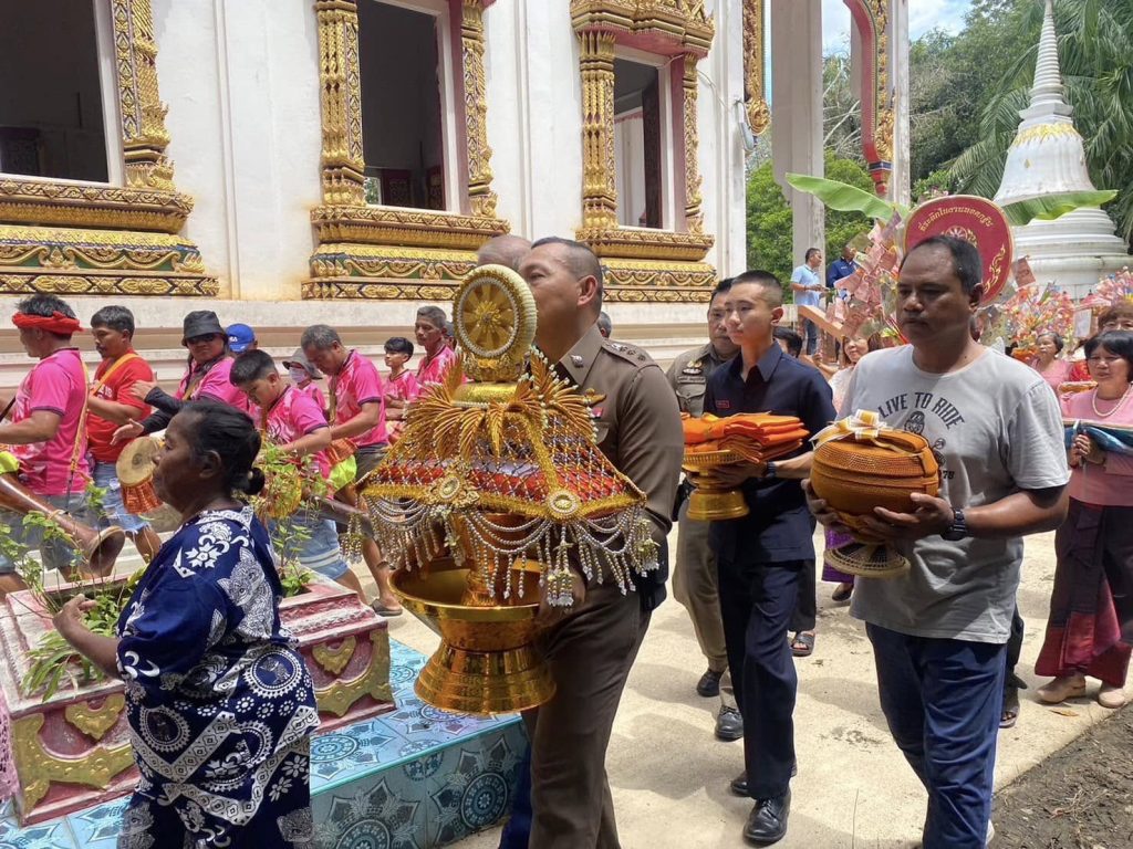 ผู้บังคับบัญชา สภ.ควนโดน อำนวยความสะดวกด้านการจราจรและรักษาความปลอดภัยบริเวณการจัดงาน และร่วมทำบุญทอดกฐิน ถวายพุ่มกฐิน ณ วัดพัฒนราม(ควนโดน)