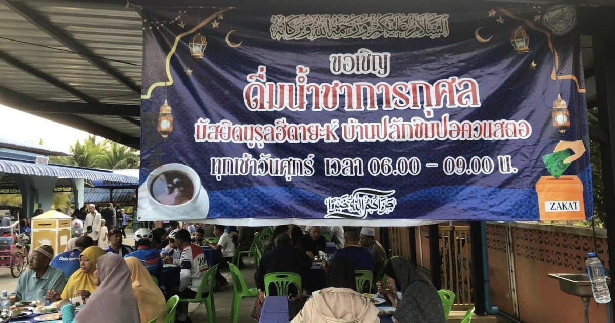 พล.ต.ต.นิพล เหมสลาหมาด ผบก.ภ.จว.สตูล พ.ต.อ.นิสิต สาและ ผกก.สภ.ควนโดน ร่วมดื่มน้ำชาเพื่อการกุศล ณ มัสยิดนูรูลฮีดายะห์ บ้านปลักซิมปอ ม.9 ต.ควนสตอ อ.ควนโดนฯ