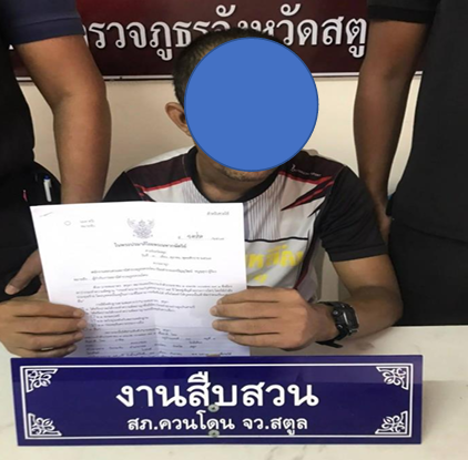 พ.ต.ท.ณรงค์ กลับใจได้ สว.สส.ฯ หัวหน้าชุด พร้อมด้วยชุดสืบสวน ได้จับกุมผู้ต้องหา ตามหมายจับของจัหวัดสตูล