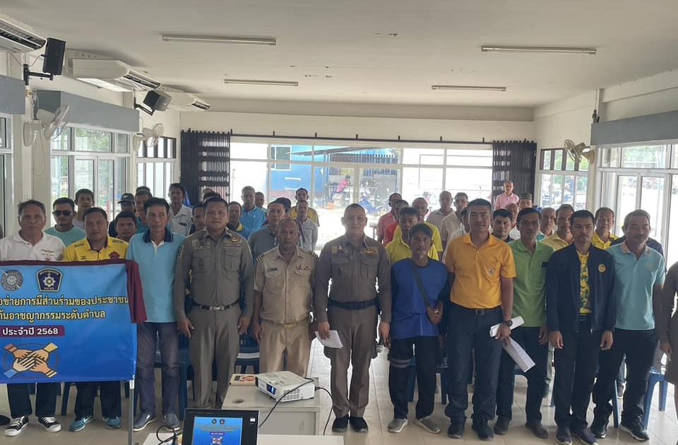 พ.ต.อ.สนธยา ธูปทองผกก.สภ.ควนโดนพ.ต.ท.นนทพัทธ์ สมบูรณ์จันทร์ รอง ผกก.ป.ฯพ.ต.ท.วีรทัย ศรีหมั่น สวป.ฯ และชุด ชมส.สภ.ควนโดน ร่วมโครงการฝึกอบรมการมีส่วนร่วมของประชาชนในการป้องกันอาชญกรรม ประจำปีงบประมาณ 2568