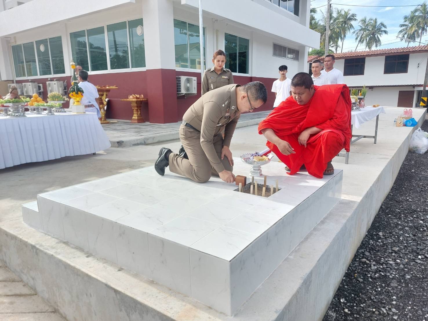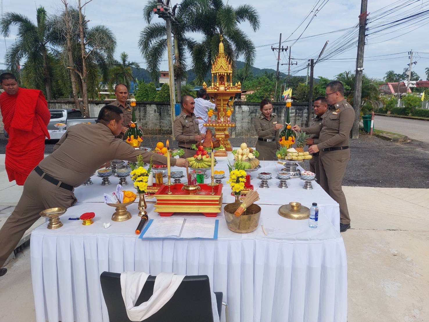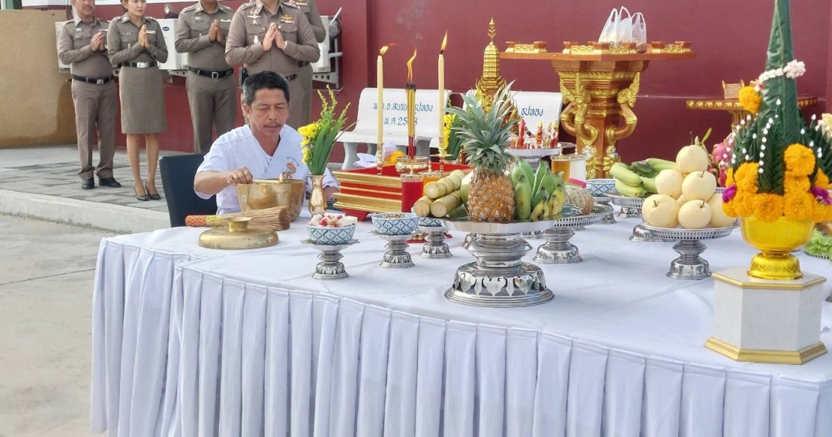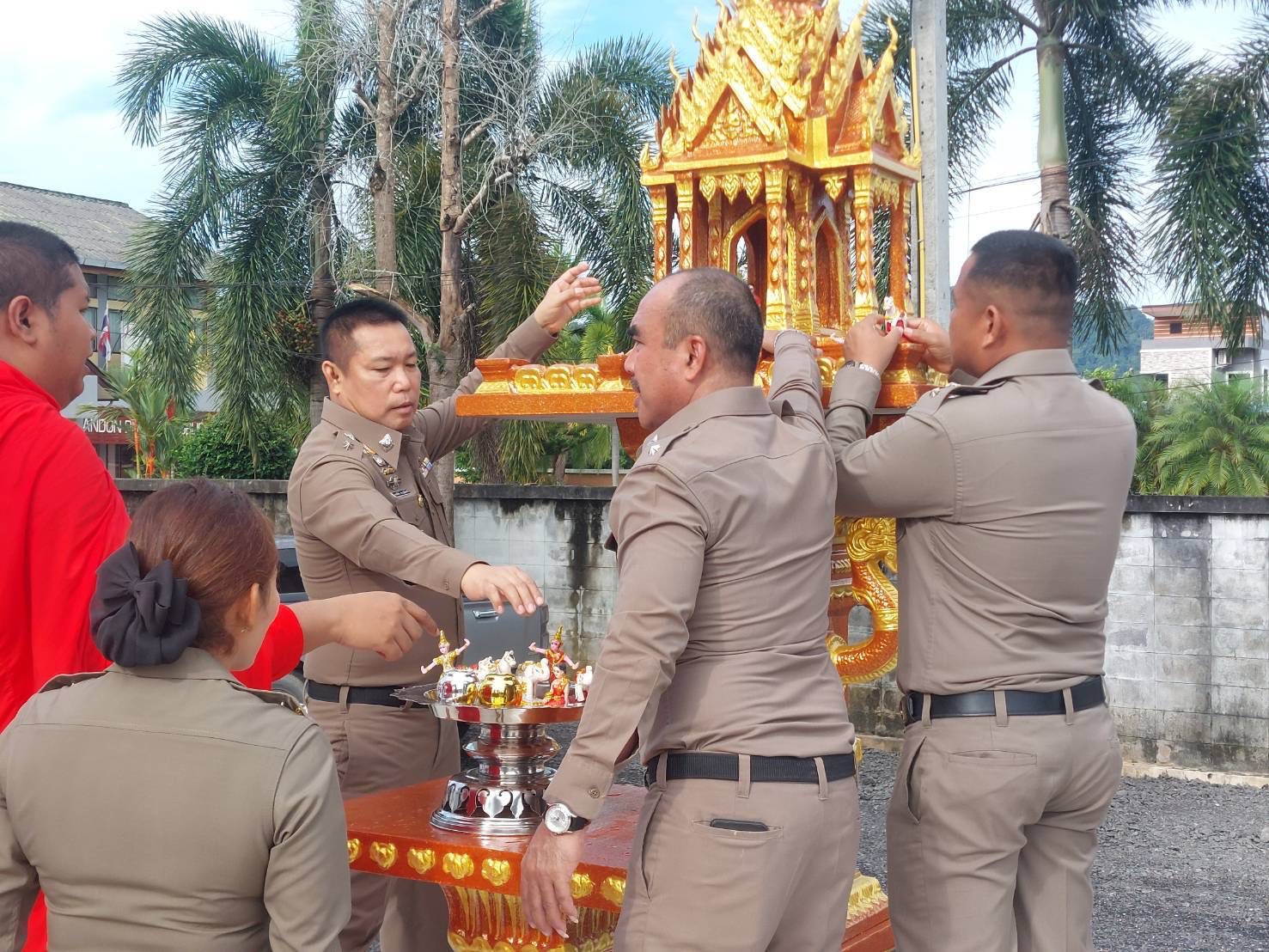 พ.ต.อ.สนธยา ธูปทอง ผกก.สภ.ควนโดน และข้าราชการตำรวจ สภ.ควนโดน ร่วมพิธีตั้งศาลพระภูมิและสวดเจริญพระพุทธมนต์ที่ทำการแห่งใหม่