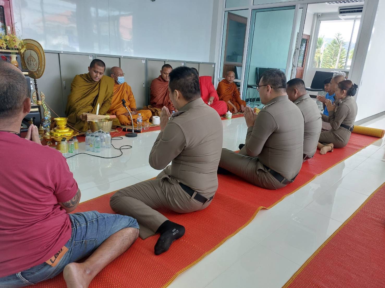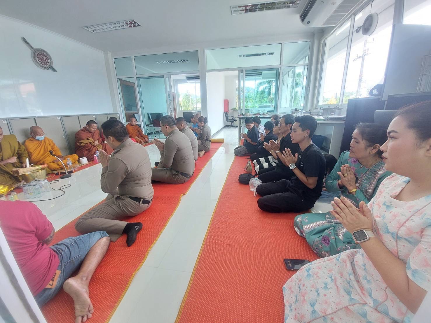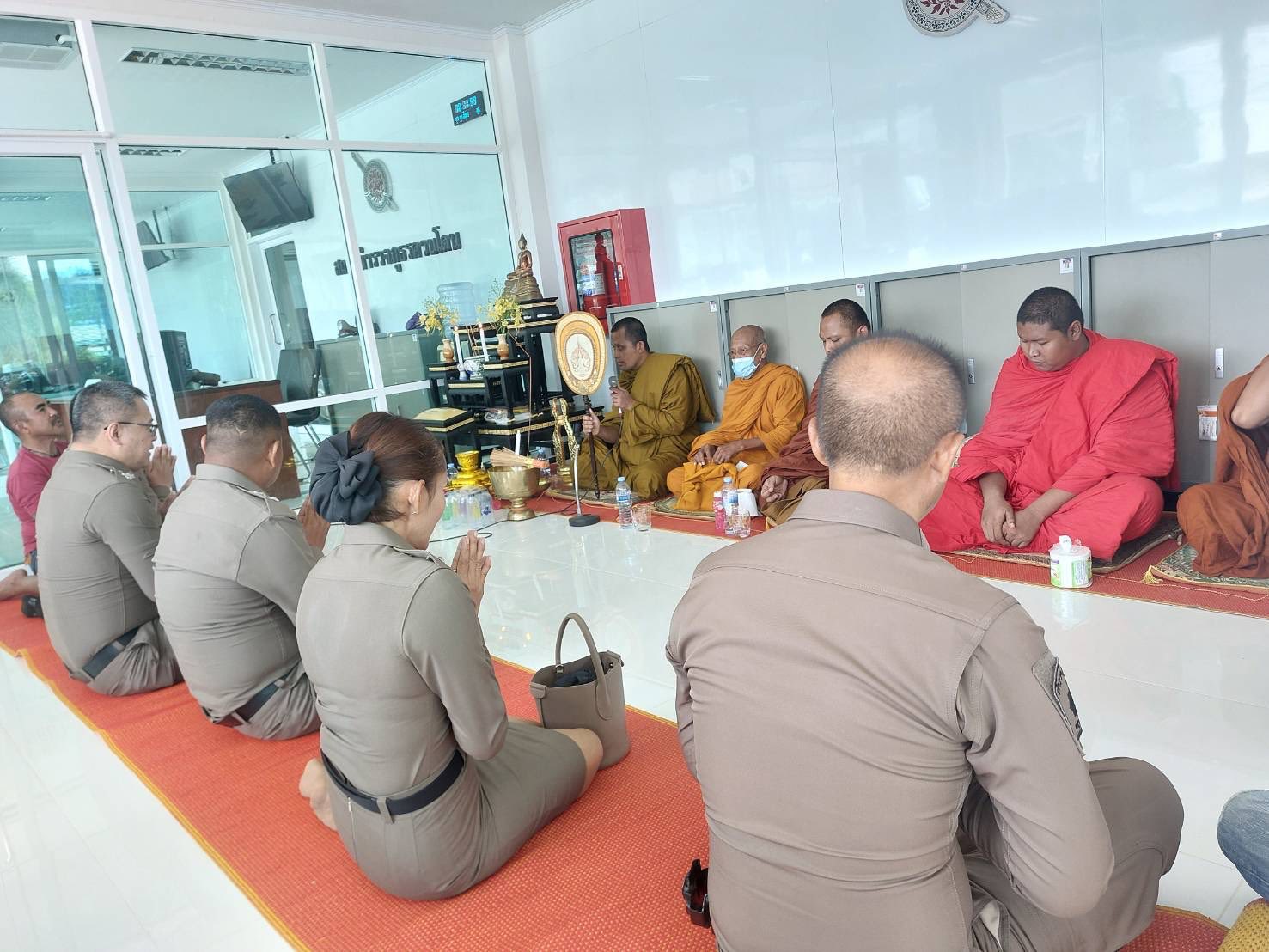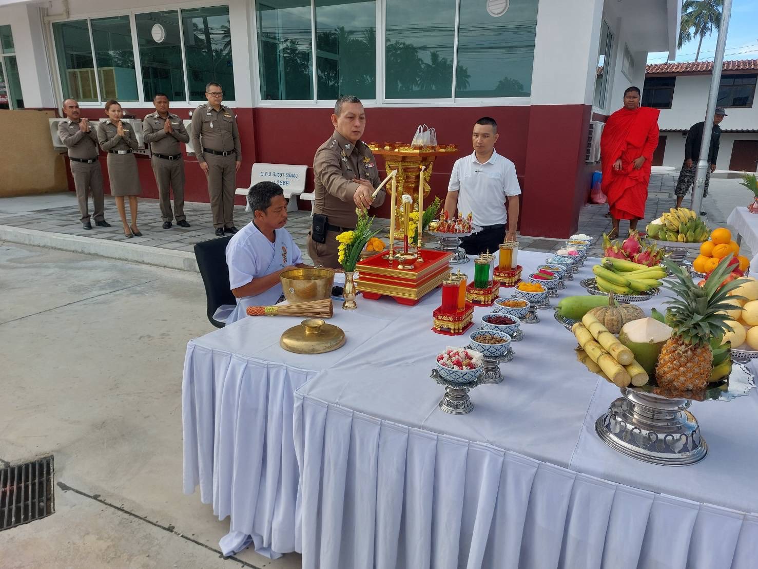 พ.ต.อ.สนธยา ธูปทอง ผกก.สภ.ควนโดน และข้าราชการตำรวจ สภ.ควนโดน ร่วมพิธีตั้งศาลพระภูมิและสวดเจริญพระพุทธมนต์ที่ทำการแห่งใหม่