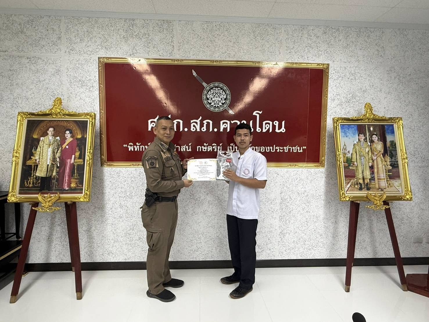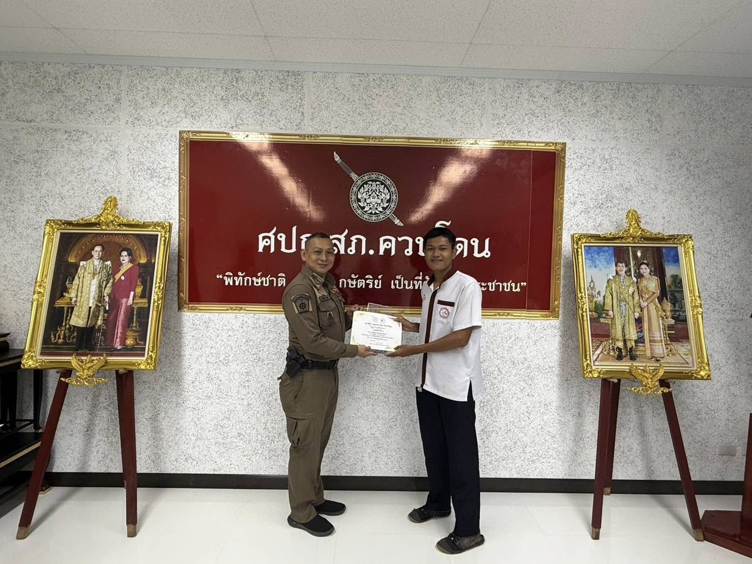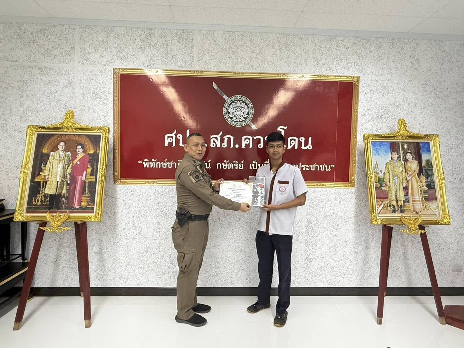 มอบเกีรติบัตรและของที่ระลึก ให้แก่ นักเรียน ที่มาฝึกประสบการณ์กลุ่มสนใจอาชีพตำรวจ