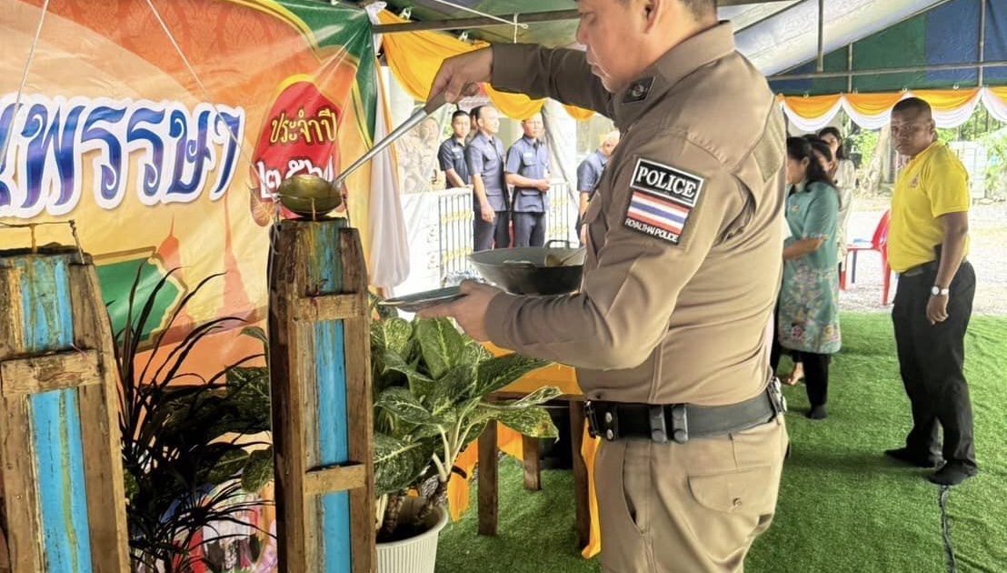ร่วมทำบุญ หล่อเทียนพรรษา ประจำปี 2567 16 กรกฎาคม 2567 โดย khuandon / ข่าวประชาสัมพันธ์,ข่าวภารกิจผู้บังคับบัญชา สภ.ควนโดน 161000 ก.ค.67 พ.ต.อ.สนธยา ธูปทอง ผกก.สภ.ควนโดน มแบหมายให้ พ.ต.ท.นนทพัทธ์ สมบูรณ์จันทร์ รอง ผกก.ป.ฯ พ.ต.ท.วีรทัย ศรีหมั่น สวป.ฯ และ พ.ต.ท.หญิง สิรภัทร เทพฉิม สว.อก.ฯ พร้อมขรก.สภ.ควนโดน ที่นับถือศาสนาพุทธ ร่วมทำบุญหล่อเทียนพรรษาประจำปี2567 ของวัดพัฒนาราม(วัดควนโดน) ต.ควนโดนฯ มีนายประยูร สิตะพงศ์ ปลัดอำเภอชำนาญการพิเศษ อ.ควนโดนฯ เป็นประธานฯ เหตุการณ์ทั่วไป ปกติ Facebook iconFacebookTwitter iconTwitterLINE iconLine