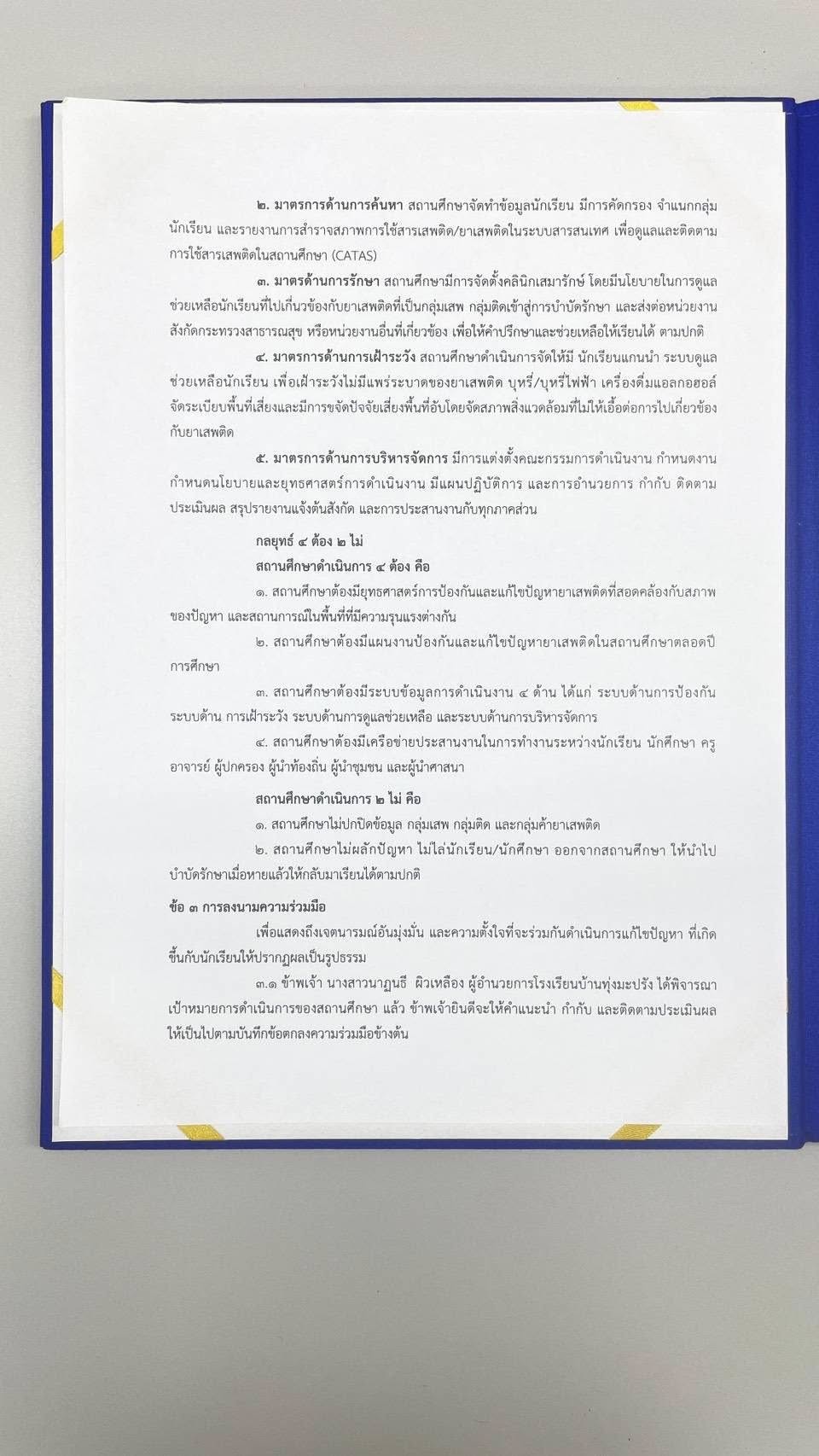 ร่วมลงนามข้อตกลง(MOU) เกี่ยวกับ โครงการสถานศึกษาสีขาว ปลอดยาเสพติดและอบายมุข