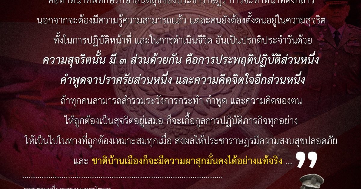 วันตำรวจ ๑๗ ตุลาคม ของทุกปี 17 ตุลาคม 2568 โดย khuandon / ข่าวกิจกรรม,ข่าวประชาสัมพันธ์ ในวันที่ 17 ตุลาคม ของทุกๆ ปี สำนักงานตำรวจแห่งชาติจะถือว่าเป็นวันสถานปนาหน่วยงาน สารวันตำรวจ 2568 ผบ.ตร.ย้ำ ต้องมีสำนึกในหน้าที่ของตำรวจอยู่ทุกขณะ ทุกข์ร้อนประชาชนรอไม่ได้ต้องพร้อมช่วยเหลือ ดูแลผู้ใต้บังคับบัญชา วันนี้ (16 ตุลาคม 2568) พล.ต.อ.กิตติ์รัฐ พันธุ์เพ็ชร์ ผู้บัญชาการตำรวจแห่งชาติ มีสารถึงข้าราชการตำรวจกว่า 2 แสนนาย ทั่วประเทศ เนื่องในวันตำรวจ ประจำปี 2568 ซึ่งตรงกับวันที่ 17 ตุลาคม 2568 ดังนี้ พี่น้องข้าราชการตำรวจทุกท่าน วันตำรวจได้เวียนมาบรรจบอีกวาระหนึ่ง นับเป็นโอกาสอันดีที่ข้าราชการตำรวจทุกนาย จะได้มาทบทวนบทบาทหน้าที่ของตนเอง ในฐานะ “ผู้พิทักษ์สันติราษฎร์” ความคาดหวังของประชาชนที่มีต่อตำรวจนั้นสูงมาก หากจะมีใครคนใดคนหนึ่ง ที่จะต้องเข้าช่วยเหลือประชาชนที่เดือดร้อน ไม่ว่าจะเป็นเรื่องใด คน ๆ นั้นคือ “ตำรวจ” ทุกท่านย่อมตระหนักดีว่า การเป็นตำรวจไม่ใช่เพียงแค่การสวมใส่เครื่องแบบอันทรงเกียรตินี้ แต่คือความมีสำนึกในหน้าที่ของความเป็นตำรวจอยู่ทุกขณะ ในปีนี้ผมจึงขอให้ตำรวจทุกนายได้ร่วมกันทบทวนหน้าที่ของตัวเอง 2 ประการ ประการที่หนึ่ง ความสำนึกในบทบาทหน้าที่ของตนเอง สำนึกในหน้าที่ของการเป็นตำรวจ ที่พร้อมที่จะช่วยเหลือประชาชน ไม่ว่าเรื่องใดก็ตาม ความทุกข์ร้อนของประชาชนเป็นสิ่งที่รอไม่ได้ ตำรวจจึงต้องเข้าช่วยเหลือ แก้ปัญหา เพื่อคลายความทุกข์ร้อนของประชาชนเหล่านั้น ประการที่สอง ผู้บังคับบัญชา มีหน้าที่ที่จะต้องช่วยเหลือ สนับสนุน ดูแล ปกป้อง ผู้ใต้บังคับบัญชาทุกคนอย่างเต็มกำลัง รวมถึงครอบครัวของพวกเขาเหล่านั้นด้วย เพื่อสร้างขวัญและกำลังใจในการทำงานให้แก่ผู้ใต้บังคับบัญชา หากพวกเขามีขวัญและกำลังใจที่ดีแล้ว ย่อมมีความพร้อมที่จะทำหน้าที่ของตนอย่างครบถ้วน สมบูรณ์ หากพวกเราทุกคนตระหนักในบทบาทหน้าที่ของตน และสำนึกในความเป็น “ตำรวจ”แล้ว ผมเชื่อว่าพวกเราทุกคน ในฐานะ “ตำรวจ” จะเป็นส่วนสำคัญในการสร้างความมั่นคงปลอดภัยให้กับสังคมไทย และความเจริญรุ่งเรืองของประเทศชาติของเราต่อไป ในโอกาสนี้ ขออาราธนาสิ่งศักดิ์สิทธิ์ทั้งหลายในสากลโลก ตลอดจนเดชะ พระบารมีแห่งองค์พระบาทสมเด็จพระเจ้าอยู่หัว และสมเด็จพระนางเจ้าฯ พระบรมราชินี ได้โปรดดลบันดาลพระราชทานพร ให้ข้าราชการตำรวจทุกท่าน และครอบครัว มีความสุข ความเจริญ มีความก้าวหน้า ในชีวิตราชการ มีพลานามัยที่สมบูรณ์ ปราศจากโรคภัยและภยันตรายทั้งปวง พร้อมที่จะป