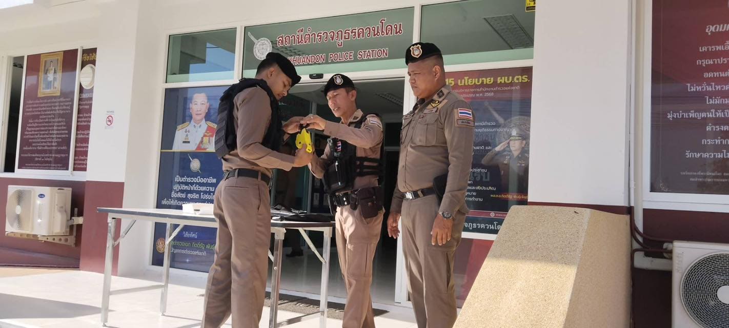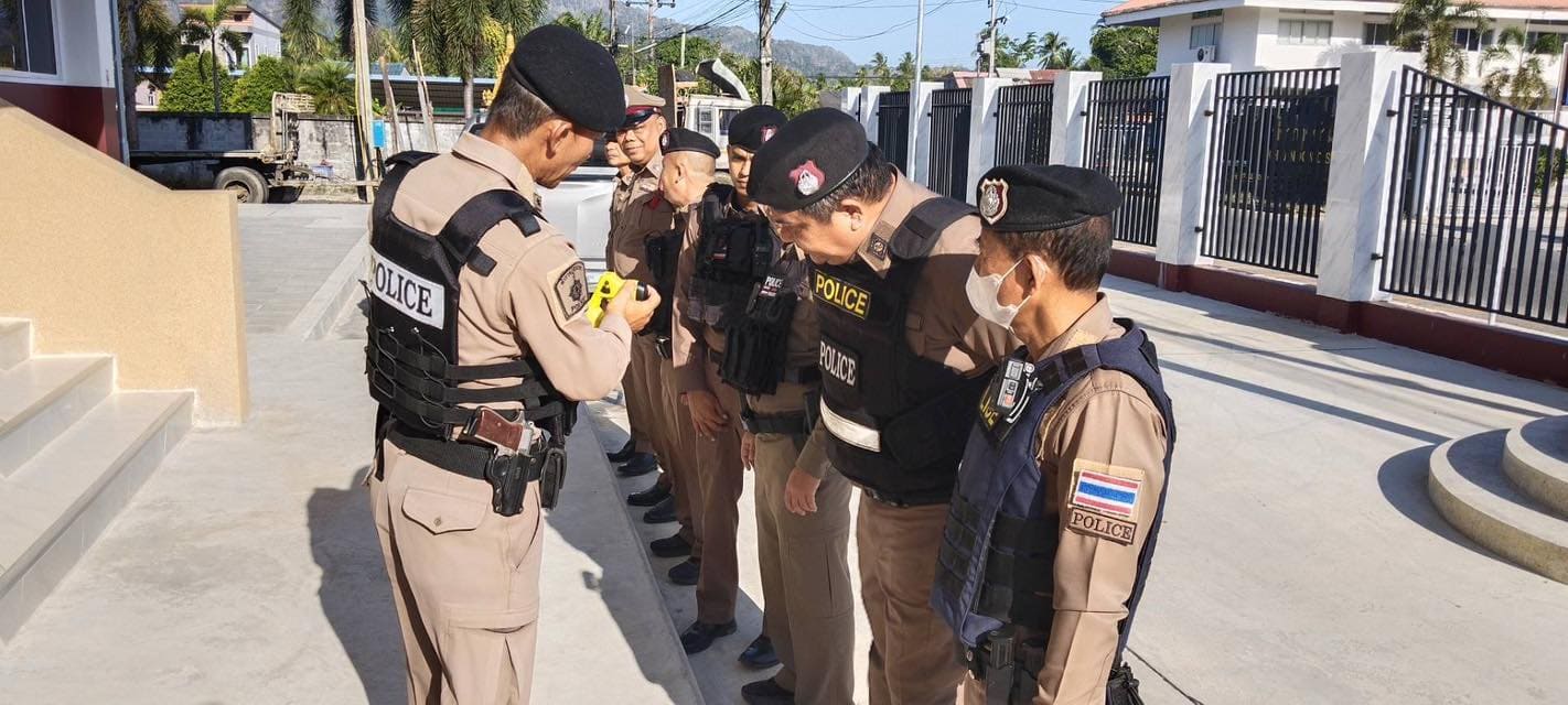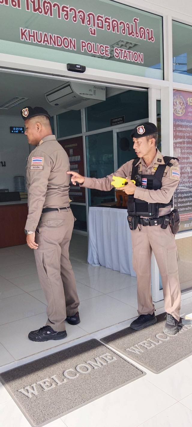 เจ้าหน้าที่ตำรวจฝึกซ้อมการใช้ปืนไฟฟ้าเพื่อเพิ่มความชำนาญในการปฏิบัติ