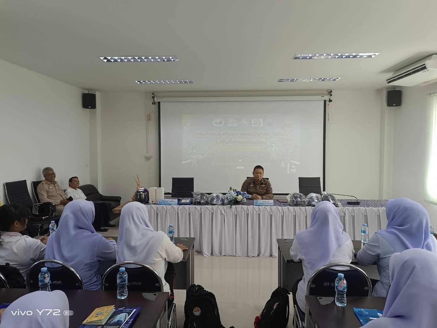 ร่วมเป็นเกียรติในพิธีเปิด โครงการป้องกันและลดอุบัติเหตุทางถนนในพื้นที่ตำบลควนโดน พร้อมให้ความรู้เรื่องกฎหมายจราจร กฎหมายเกี่ยวกับเด็ก และแนะนำการใช้รถใช้ถนนอย่างปลอดภัย ถูกต้องตามกฎหมายจราจร
