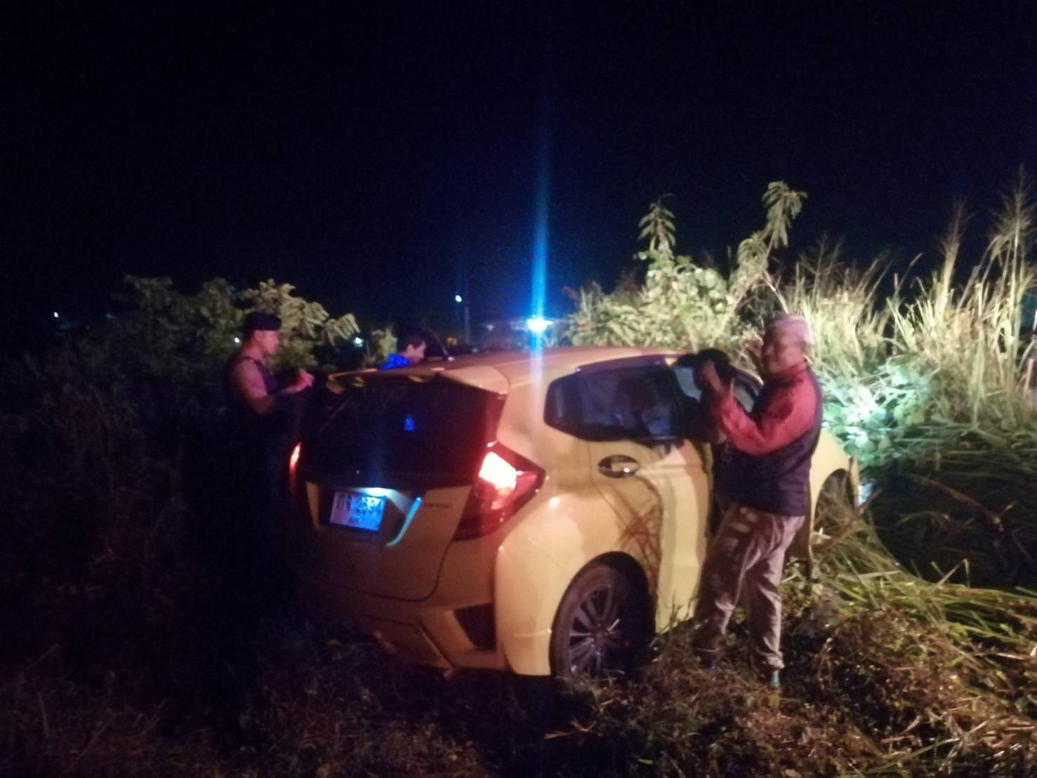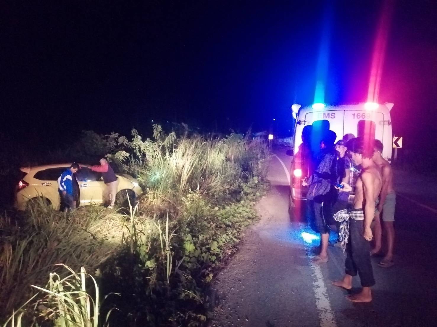 ได้รับแจ้งจากศูนย์วิทยุ 191 เกิดเหตุ รถยนต์ตกข้างทาง บริเวณโค้งชลประทานดูสน