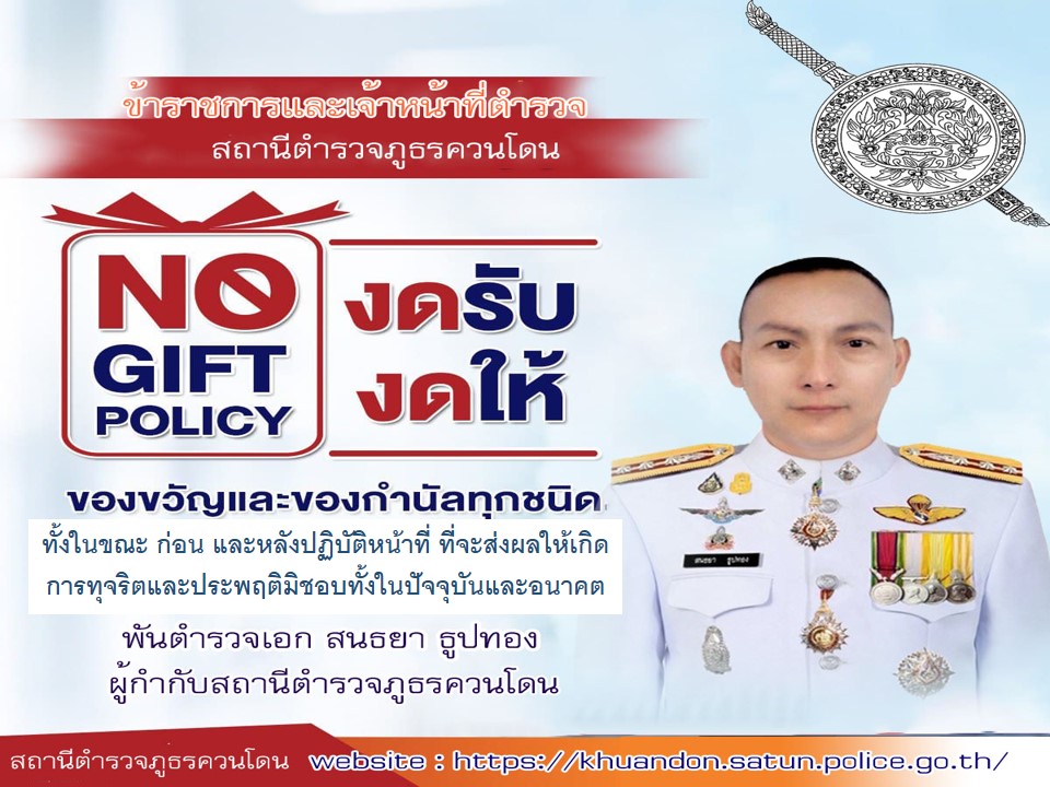 ภาพอินโฟกราฟฟิกนโยบายไม่รับของขวัญและของกำนัลทุกชนิด (No Gift Policy)