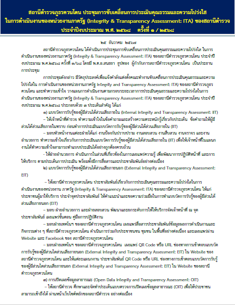 25 การรายงานผลการดำเนินการตามมาตรการ การยกระดับคุณธรรมและความโปร่งใสภายในหน่วยงาน