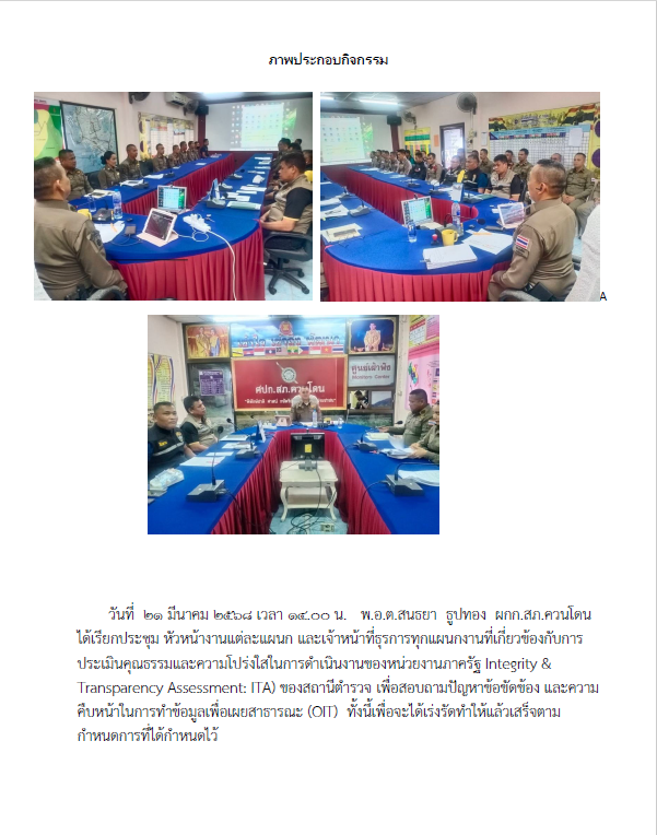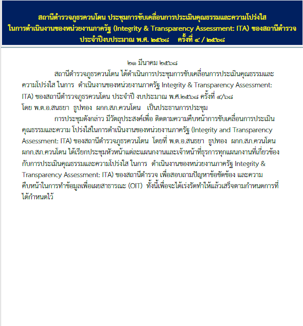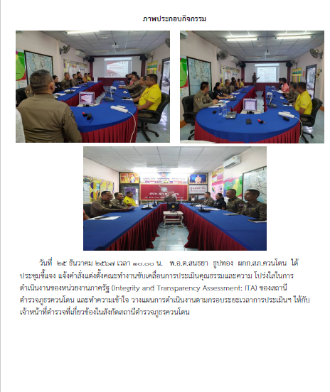 รายงานผลการดำเนินการยกระดับคุณธรรมและความโปร่งใสภายในหน่วยงาน สภ.ควนโดน