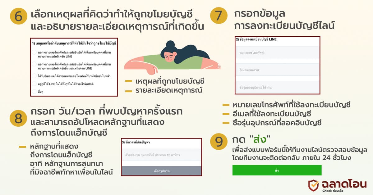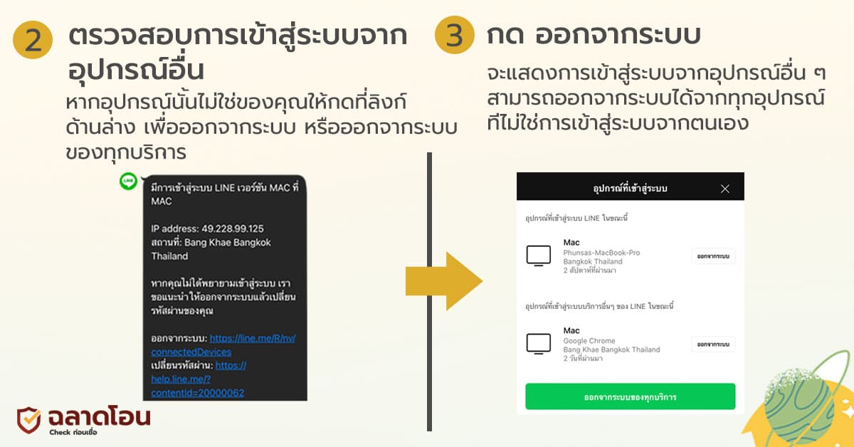 LINE โดนแฮ็ก ทำอย่างไรดี 9 กรกฎาคม 2566 โดย khuandon / ข่าวประชาสัมพันธ์ หากคุณพบว่า ตอนนี้บัญชีไลน์ของคุณถูกแฮ็ก อันดับแรกให้รีบตรวจสอบก่อนว่า คุณยังสามารถเข้าสู่ระบบไลน์ของตนเองได้หรือไม่ ในกรณีที่สามารถเข้าสู่ระบบได้ ให้คุณตรวจสอบการเข้าสู่ระบบจากอุปกรณ์อื่น ๆ และเปลี่ยนรหัสผ่านสำหรับใช้เข้าสู่ระบบ โดยมีขั้นตอน ดังนี้ แต่หากพบว่า ไม่สามารถเข้าสู่ระบบบัญชีไลน์ของคุณได้อีกแล้ว ให้คุณรีบติดต่อ LINE เพื่อแจ้งเหตุและระงับการใช้งานทันที โดยคุณสามารถทำตามขั้นตอนด้านล่างนี้ได้ทันที Facebook iconFacebookTwitter iconTwitterLINE iconLine