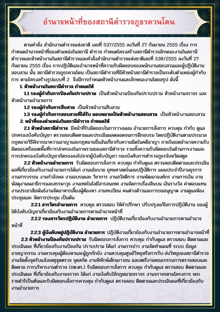 – ระเบียบสำนักงานตำรวจแห่งชาติ ว่าด้วยการกำหนดหน้าที่ของส่วนราชการ สำนักงานตำรวจแห่งชาติ (Download…)