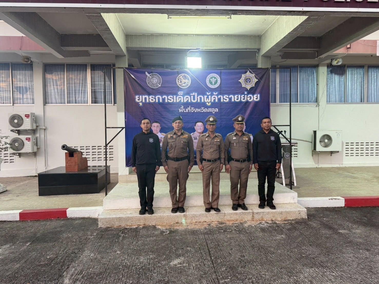 พ.ต.อ.สนธยา ธูปทอง ผกก.สภ.ควนโดน และชุดปฏิบัติการ ร่วมปล่อยแถวปิดล้อมตรวจค้นเครือข่าย แหล่งพักยาเสพติด และโครงการยุทธการเด็ดปีกนักค้ารายย่อยประจำปีงบประมาณ 2568 ณ ภ.จว.สตูล